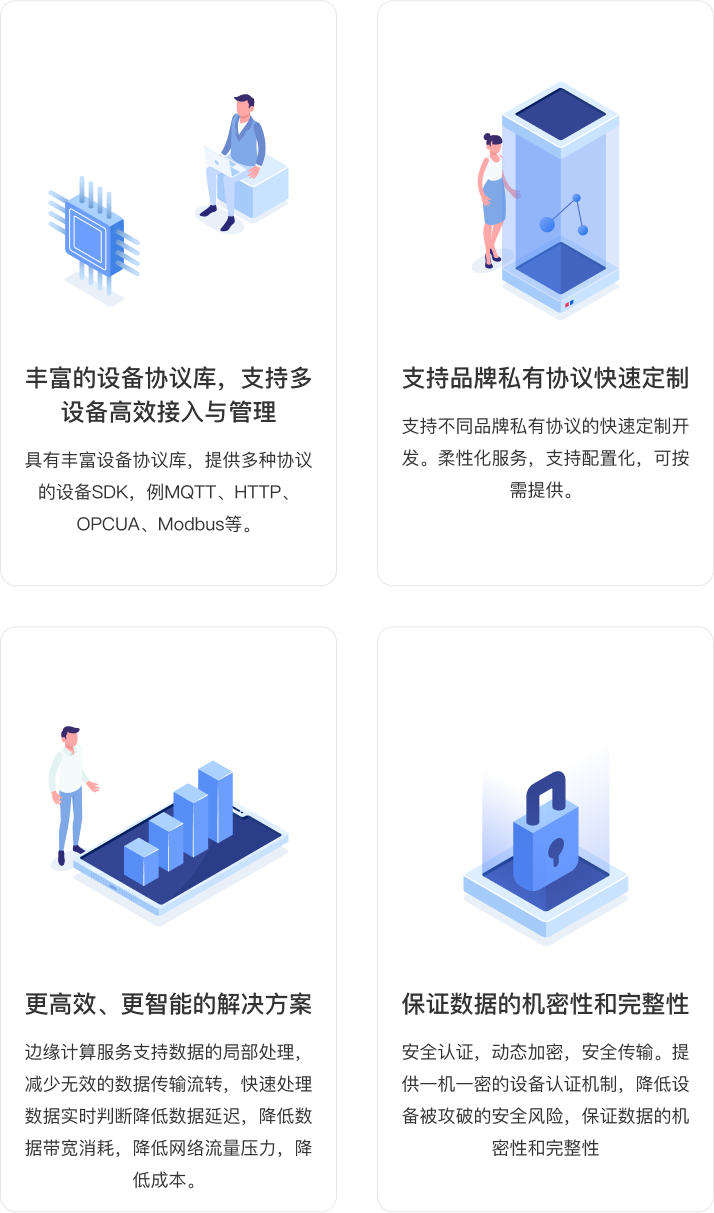 3、平臺穩(wěn)定可靠的數(shù)據(jù)采集與存儲能力,方便海量設備數(shù)據(jù)存儲、實時訪問,為設備數(shù)據(jù)分析,設備數(shù)字化運維管理提供堅實的基礎。
