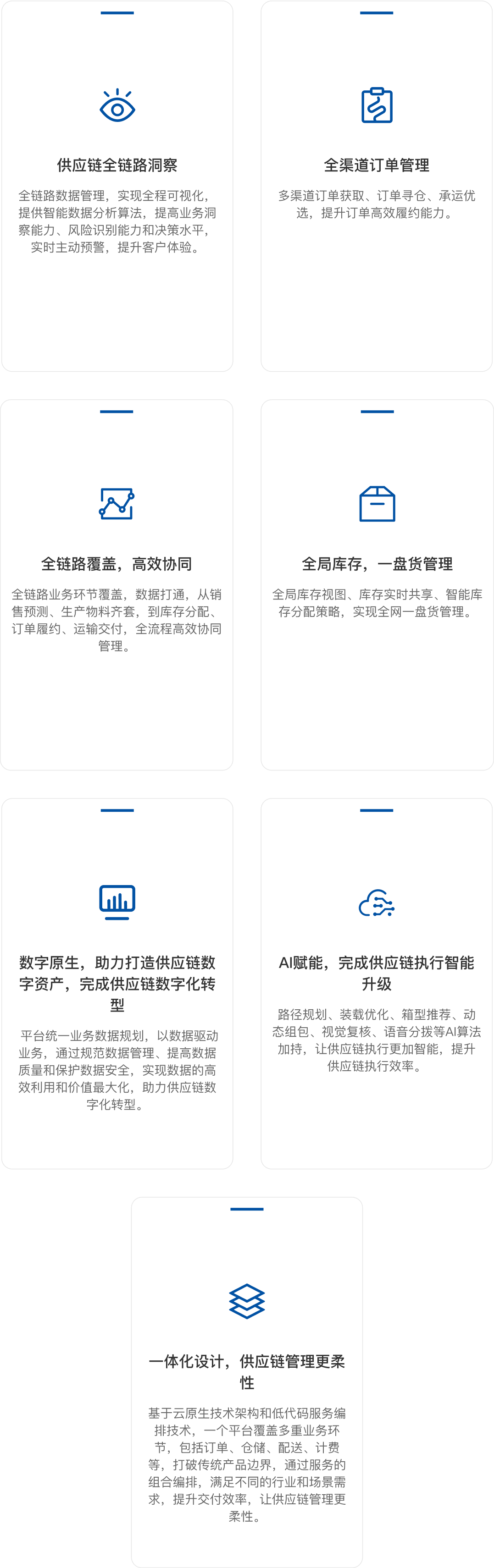 訂單協(xié)同OMS接入全渠道訂單,高效協(xié)同供應商,制造商,經(jīng)銷商,客戶,門店,倉庫,承運商,為供應鏈企業(yè)在數(shù)字化轉型中對訂單歸集,訂單合并及拆分,訂單挑倉,全局庫存及庫存尋源,訂單異常管理,退換貨管理,訂單全生命周期管理,對多種業(yè)務場景的訂單進行協(xié)同,從而實現(xiàn)訂單履約及交付管理。